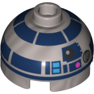 Brick Round 2 x 2 Dome Top, Hollow Stud with R2-D2 Astromech Droid Print | Flat Silver | 1 | 0 | 0 |