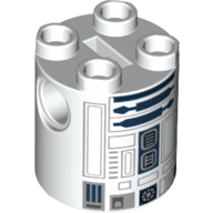 Brick Round 2 x 2 x 2 Robot Body, Axle Holder '+' Orientation with Blue and Gray Astromech Droid Print (R2-D2) | White | 1 | 0 | 0 |