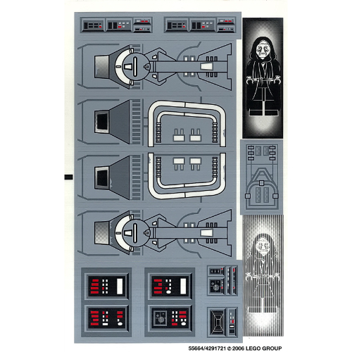 Torso Jacket, Red, Blue and Yellow Rank Badge, Black Belt with Silver Buckle Print (Grand Moff), Dark Bluish Gray Arms, Light Nougat Hands