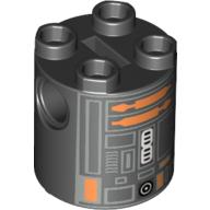 Brick Round 2 x 2 x 2 Robot Body, Axle Holder '+' Orientation with Copper and Silver Imperial Astromech Droid Print